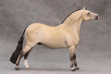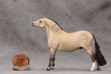 Grey and m&m Buckskin with 1 sock & chestnut by Walnut Lane Studios.