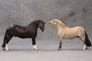 Bay Neighing and m&m buckskin with 3 socks by Deb Brown